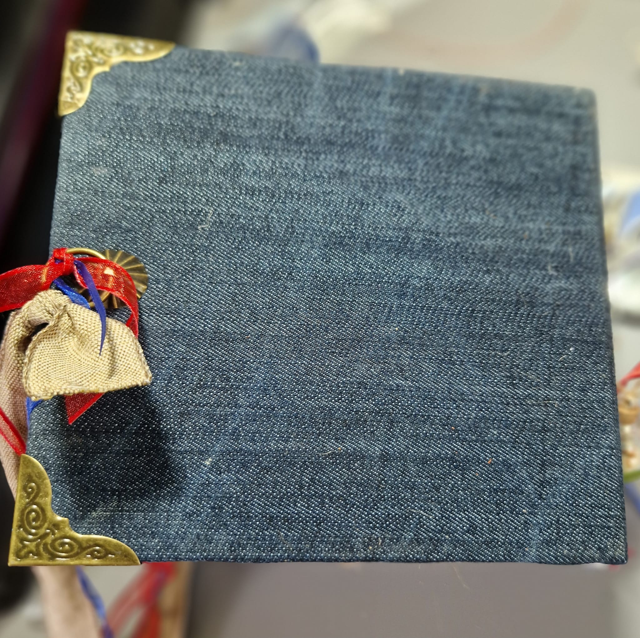 Dieses Journal habe ich mit Jeansstoff bezogen und bin mit den Papieren