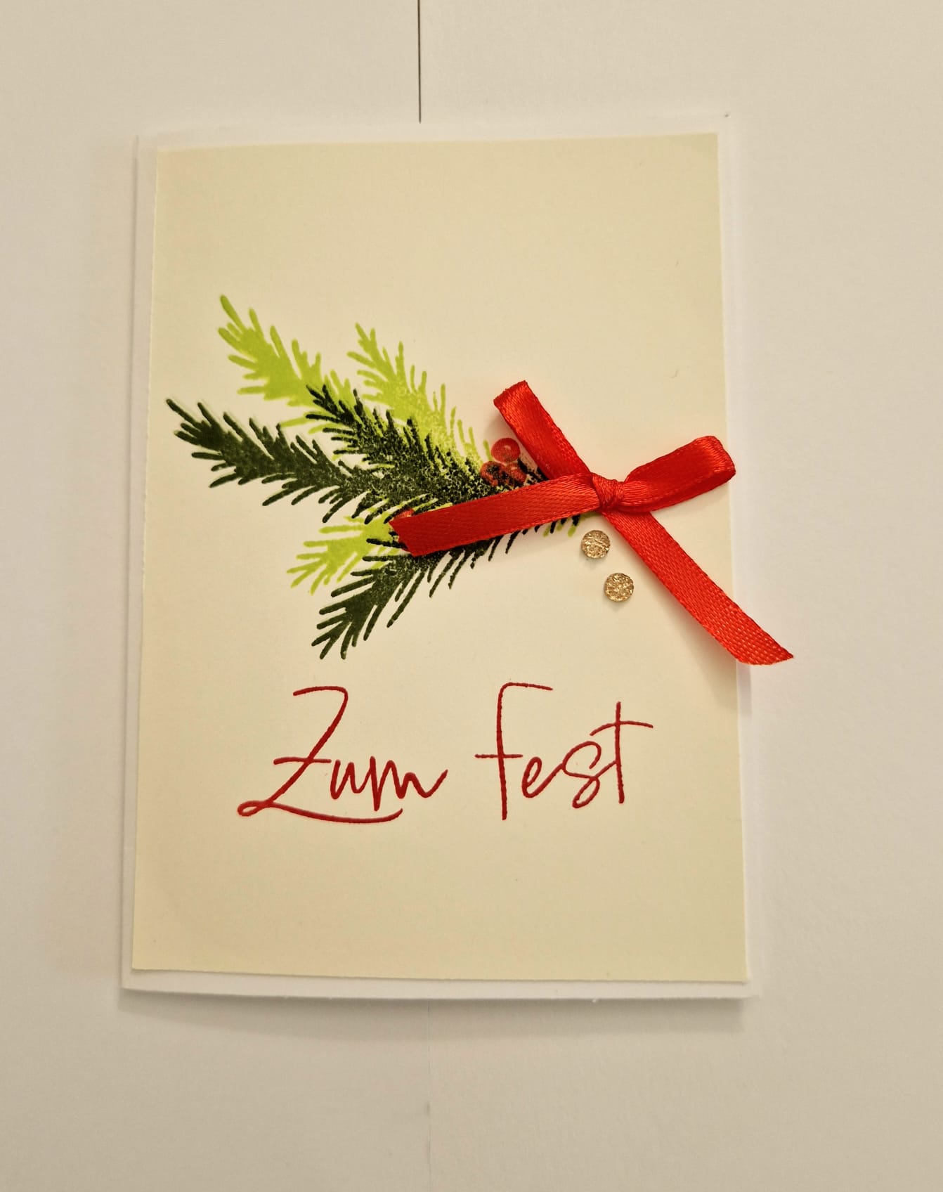 Die Tannenzweige sind in Olivgrün und Limette - die Ilexbeeren habe ich in Gutrot gestempelt