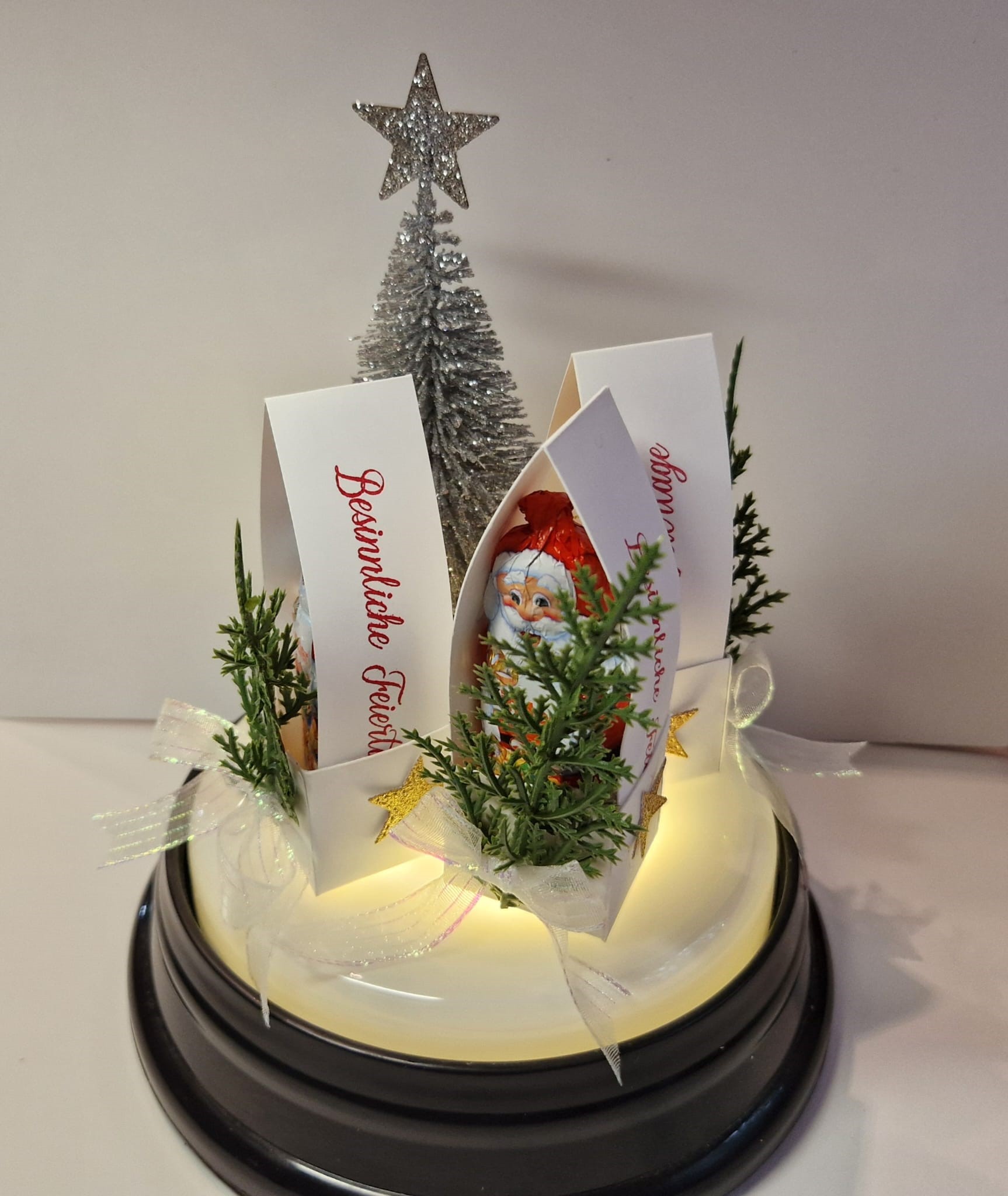 Die Schachtel, wo der Weihnachtsmann drin steht, beträgt ca. 3 x 3 cm.